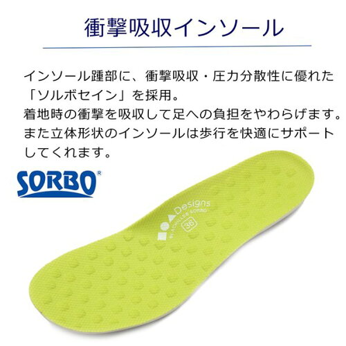 (ソフト樹脂) ・衝撃吸収・圧力分散性に優れた「SORBO」をインソールかかと部に内蔵。