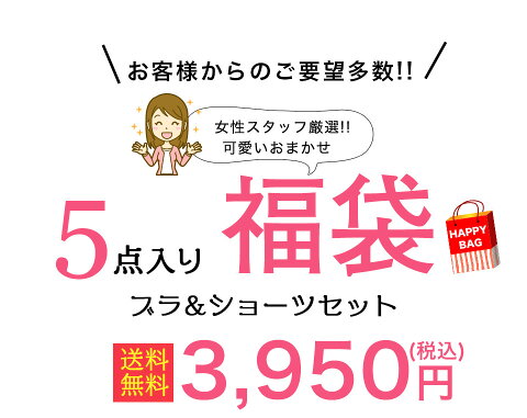 女性スタッフが厳選!ブラショーツおまかせ5組セット 創業86年の信頼からメーカーの協力のおかげで実現した、5枚セット福袋です 商品名 ブラジャー&ショーツセット おまかせ 5組セット福袋 サイズ A65〜A85 B65〜B85 C65〜C85 D65〜D85 E65〜E85 F65〜F85 サイズ アンダー65・70の方: Mサイズ(ヒップ:87cm - 95cm) アンダー75以上の方: Mサイズ(ヒップ:87cm - 95cm or Lサイズ(ヒップ:92cm - 100cm) アンダー80以上の方: Lサイズ(ヒップ:92cm - 100cm) or LLサイズ(ヒップ:97cm - 105cm) 素材 ポリエステル・ナイロン など ※福袋のため商品によって素材は異なります。