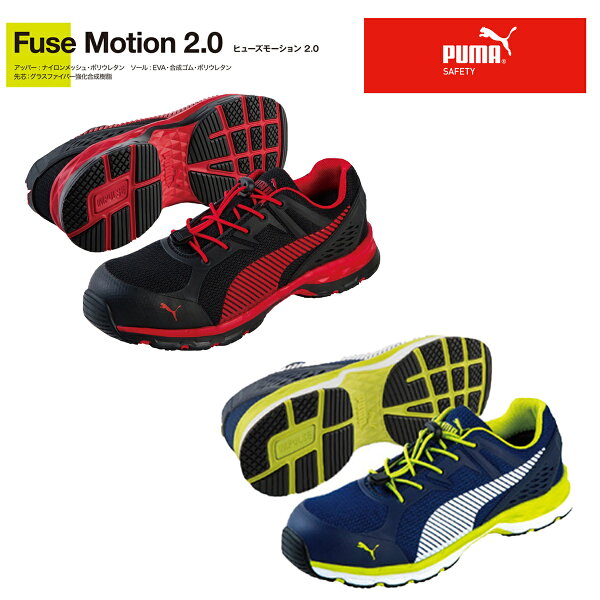 安全靴 PUMA プーマ Fuse Motion2.0 フューズモーション2.0 レッド ブルー ローカット 紐タイプ おしゃれ JSAA A種 PUMA SAFETYのかっこいいセーフティシューズ! メーカー品番:Fuse Motion2.0 No.64.226.0、No.64.230.0 サイズ:25.0,25.5,26.0,26.5,27.0,28.0素材:アッパー:ナイロンメッシュ・ポリウレタン、先芯:グラスファイバー強化合成樹脂、ソール:EVA・合成ゴム・ポリウレタン重量:約480g(26.5cm片方)ウィズ:3E、JSAA A種 【在庫がある場合】2〜5営業日以内に出荷致します。