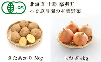 【ふるさと納税】小笠原農園の有機野菜2種詰合せ(きたあかり5kg・玉ねぎ4kg)【北海道十勝幕別】≪2021年秋より順次出荷≫ 【野菜・じゃがいも・玉ねぎ・たまねぎ・タマネギ・セット・詰合せ】 お届け:2021年9月下旬〜12月下旬