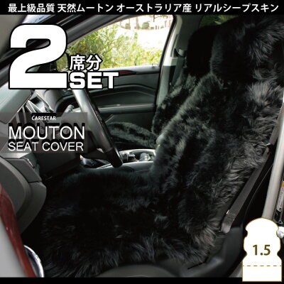 【店内全品ポイント10倍】お買い物マラソン 2席分セット 天然 最高級ランク ムートン 毛皮 シートカバー ブラック オーストラリア産 羊本革 軽自動車 普通車 車用 カーシートカバー 裏地クッション 1.5匹もの 約7cmの長毛ロングフリース